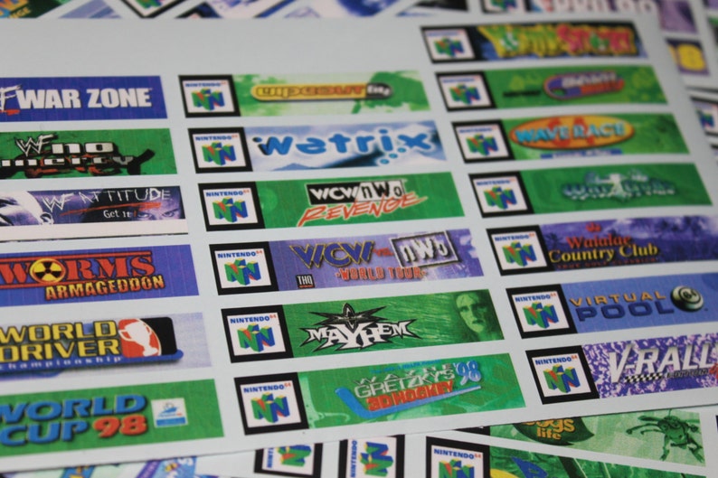 High-quality Nintendo 64 N64 Cartridge Spine Labels Full ... High-Quality Nintendo 64 (N64) Cartridge Spine Labels - Full 296pc North American (NTSC) Set + Extras $39.99 In stock Add your personalization If you do not require any personalization just type "NONE". Most items can have minor modifications made to them. Let us know if you'd like a name added or a decal cut to a specific size.