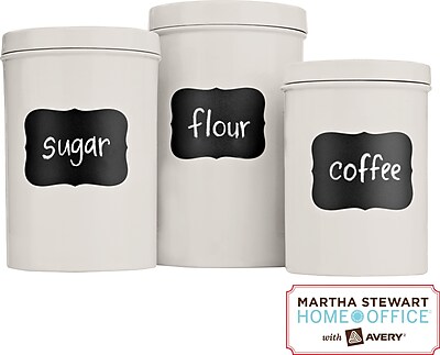 Martha Stewart Home Office with Avery @STAPLES-Product ... There is a huge line of labels for the kitchen. They come in many different shapes and colours: there are spice, jar, canister/container, chalkboard, file folder, envelope, colour-coded and metallic. Every type of label that you need (want, must have) is available in the MSHO line.