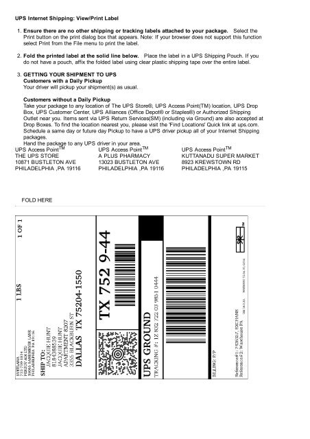 Can UPS Print A Label For Me? How Much Do They Charge? Sep 28, 2022 ... Yes, with UPS Printing Services, you can bring in the label saved on a USB or email it to them when you're at a UPS Store, and they'll print ... Will UPS Print my Label?-Know more - Bob Cut Magazine Mar 11, 2022 ... Yes, UPS can print the labels with its printing services. The customers can bring a soft copy of the label, on a USB drive. › can-ups-print-a-label-for-meCan UPS Print a Label for Me? - The Superficial Mar 31, 2022 · UPS is one of the top shipping and supply change management companies in the world. They are known for their faster shipping options. The company currently ranks at 35th position in Fortune 500. Many people still get confused between UPS and USPS and let me tell both are different companies. USPS is a postal service I am unable to print a label. Which service can I use? - UPS Today A. If you do not have direct access to a printer, there are a number of alternatives you can consider: - E-mail the ...