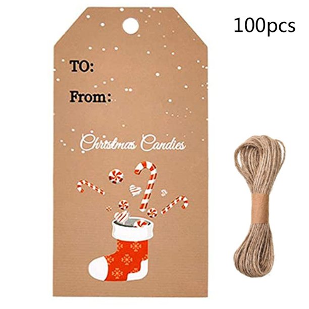 HGYCPP 100 Pieces Christmas Kraft Paper Gift Tags Snowman Santa Tree Hanging Labels with String for for DIY Craft Name Card Present Wrapping Candy ...